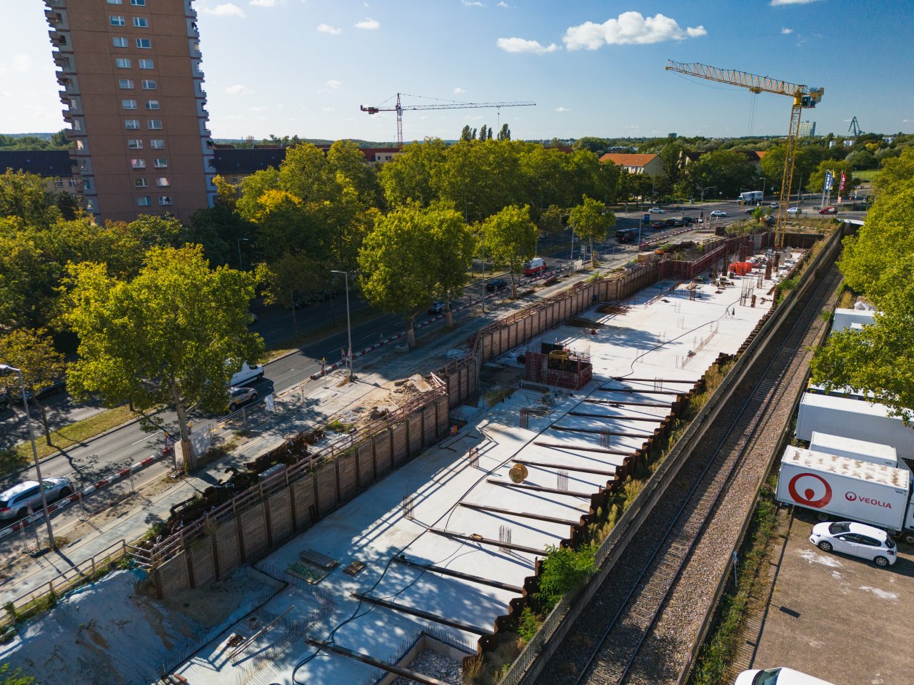 Aktuell realisieren wir ein weiteres MyPlace-Selfstorage-Projekt in Berlin-Spandau. Auf einer Bruttogeschossfläche von rund 16.000 m² entsteht ein moderner Neubau, dessen Fertigstellung für Ende 2025 geplant ist. BBK übernimmt bei diesem Bauvorhaben den erweiterten Rohbau sowie die Ausführung der Innenputzarbeiten. Durch unsere langjährige Erfahrung und präzise Arbeitsweise sichern wir einen reibungslosen Bauablauf und höchste Qualität in der Umsetzung. Das Projekt ist ein weiterer Meilenstein in unserer erfolgreichen Zusammenarbeit mit MyPlace-Selfstorage.